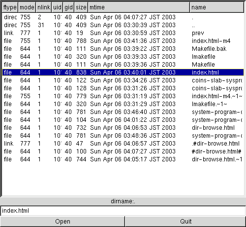 UNIXでは,次のようなディレクトリ・ブラウザが利用可能になっている。